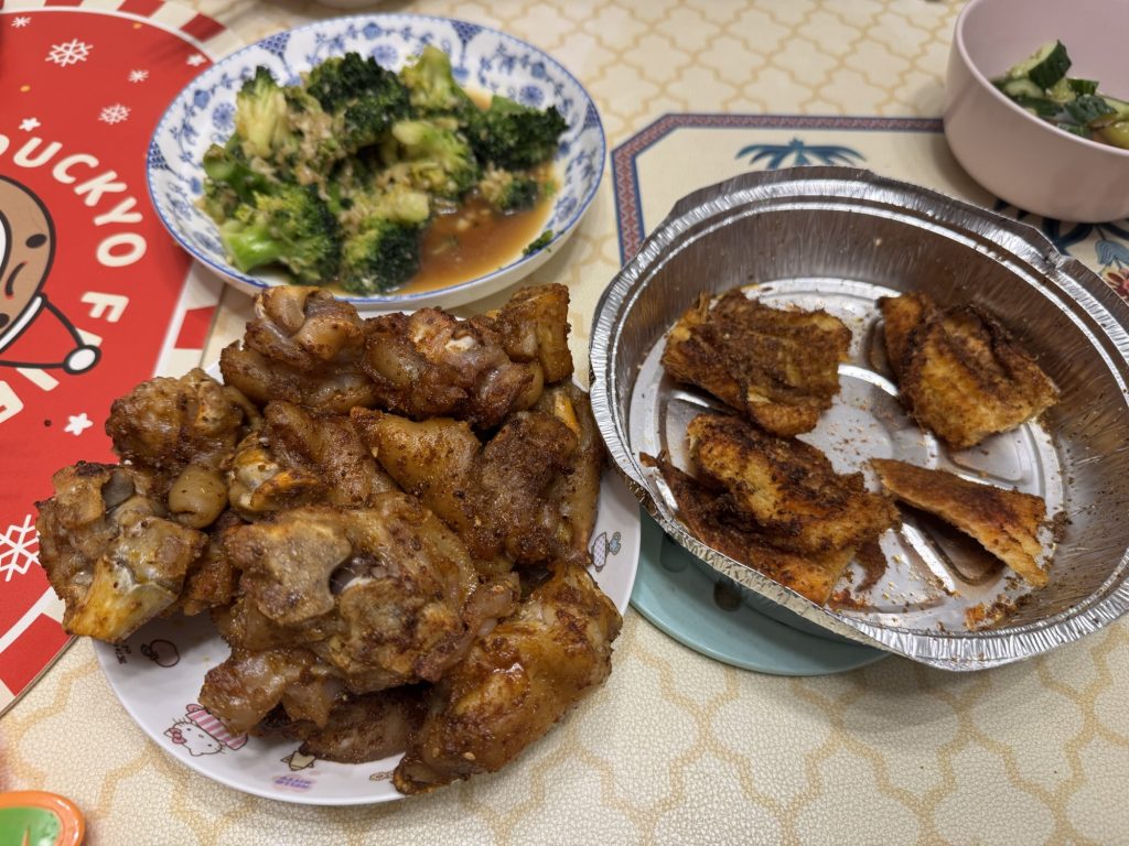 全家都爱吃的烤猪蹄 今天做了全家都爱吃的烤猪蹄,我还喝了杯小酒。猪蹄烤的外焦里嫩,吃起来很有弹性。烤鱼是老丈母娘从东北邮过来的明太鱼做的。用水洗干净,涂抹上烧烤料,180度烤18分钟,有点酥脆。 人最幸福的时刻或许就是和家人一起吃饭过踏实的日子。 人终究会死的,珍惜和家人在一起的每一分钟。这是上帝赐予我们的恩典。